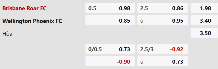 Thông tin tỷ lệ cược Brisbane Roar vs Wellington: