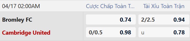 Thông tin tỷ lệ cược Bromley vs Cambridge:
