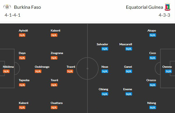 Đội hình dự kiến Burkina Faso vs Guinea Xích Đạo: