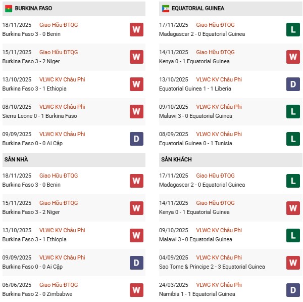 Thống kê phong độ Burkina Faso vs Guinea Xích Đạo: