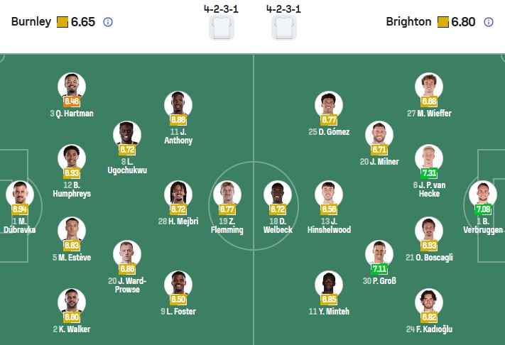 - Burnley thắng 2, hòa 5, thua 3 trong 10 trận gặp Brighton gần đây.