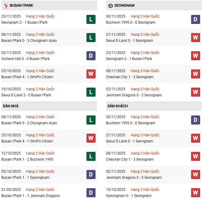 Dự đoán kết quả Busan I.Park vs Seongnam: