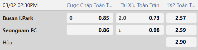 Thông tin tỷ lệ cược Busan I.Park vs Seongnam: