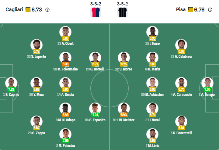 Đội hình dự kiến Cagliari vs Pisa:
