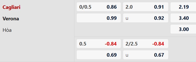Thông tin tỷ lệ cược Cagliari vs Verona: