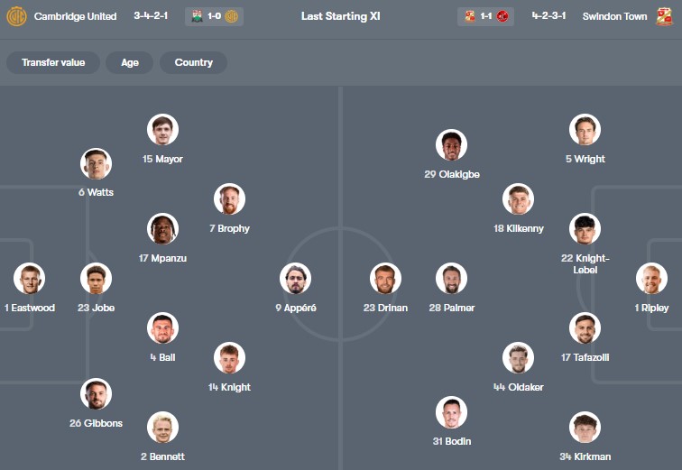 Đội hình dự kiến Cambridge vs Swindon: