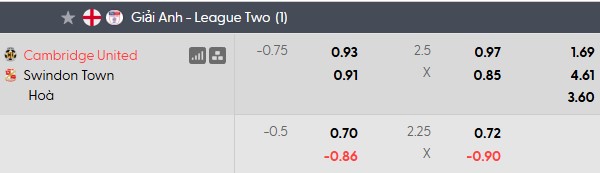 Nhận định kèo châu Á Cambridge vs Swindon:
