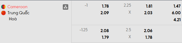 Thông tin tỷ lệ kèo Cameroon vs Trung Quốc: