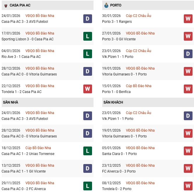 - Casa Pia hòa 1, thua 7 trong 8 trận gặp Porto gần đây.