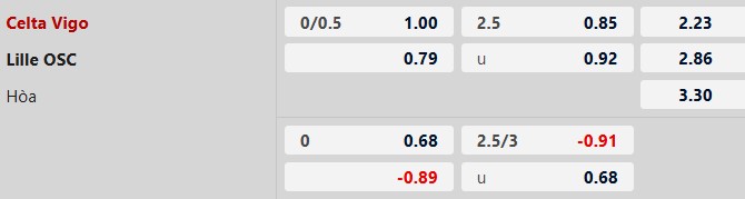 Thông tin tỷ lệ bóng đá Celta Vigo vs Lille: