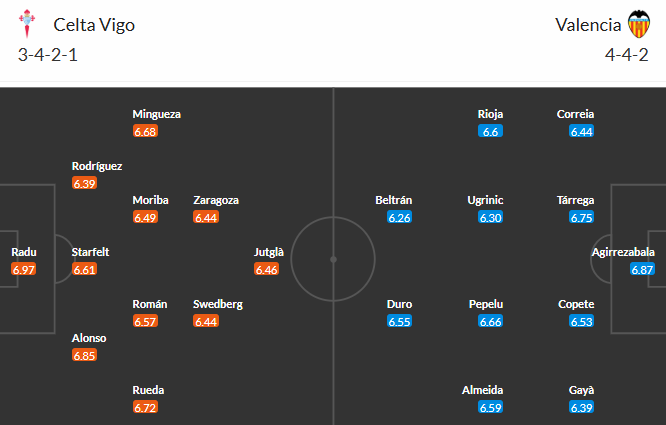 Đội hình dự kiến Celta Vigo vs Valencia:
