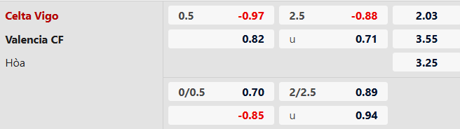 Thông tin tỷ lệ kèo Celta Vigo vs Valencia:
