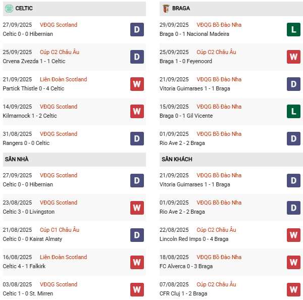 Celtic vẫn bất bại trong thời gian thi đấu chính thức và chưa từng nếm mùi thất bại trên sân nhà kể từ tháng 3/2025. Tuy nhiên, đối đầu với một Braga không dễ bị đánh bại, các cầu thủ Celtic khó có thể nghĩ tới chiến thắng. Kịch bản về một trận hòa là rất khả thi và đội khách là địa chỉ người hâm mộ nên đặt niềm tin.
