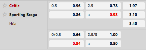 Thông tin tỷ lệ bóng đá Celtic vs Braga: