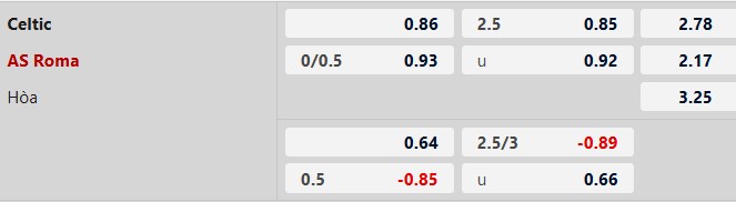 Thông tin tỷ lệ kèo bóng đá Celtic vs Roma: