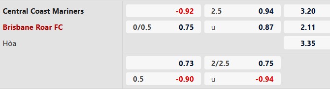 Soi kèo châu Á Central Coast vs Brisbane Roar: