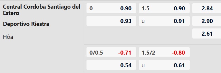 Tỷ lệ kèo châu Á được đưa ra ở mức 0:0 cho thấy đánh giá hai đội khá cân bằng. Central Cordoba có lợi thế sân nhà nhưng phong độ không quá ổn định khi chỉ thắng 1 trong 4 trận gần nhất. Trong khi đó Deportivo Riestra tuy xếp dưới nhưng lại tỏ ra cực kỳ khó chịu với lối chơi phòng ngự chắc chắn. Đặc biệt họ đang có chuỗi nhiều trận hòa liên tiếp với tỷ số thấp. Với sự cân bằng hiện tại, khả năng hai đội chia điểm là khá cao.