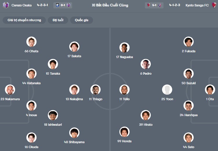 Đội hình dự kiến Cerezo Osaka vs Kyoto Sanga: