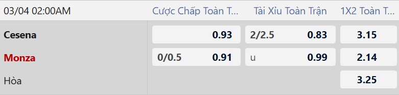 3/5 trận sân nhà gần nhất của Cesena có không quá 2 bàn thắng. Phía đối diện, 3/4 trận vừa qua của Monza cũng diễn ra với kịch bản khô hạn bàn thắng. Ngoài ra, 2/3 lần đối đầu gần đây giữa hai đội đều kết thúc với tổng bàn thắng thấp. Trong bối cảnh cả hai đều đặt nặng yếu tố điểm số, khả năng trận đấu diễn ra chặt chẽ và không có quá nhiều bàn thắng là khá cao.