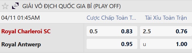 Thông tin tỷ lệ cược Charleroi vs Antwerp: