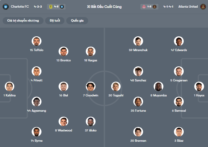 Đội hình dự kiến Charlotte vs Atlanta United: