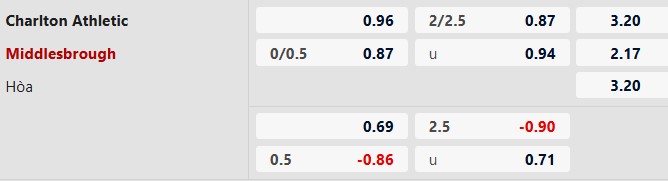 Thông tin tỷ lệ bóng đá Charlton vs Middlesbrough: