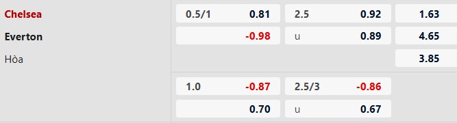 Thông tin tỷ lệ kèo bóng đá Chelsea vs Everton: