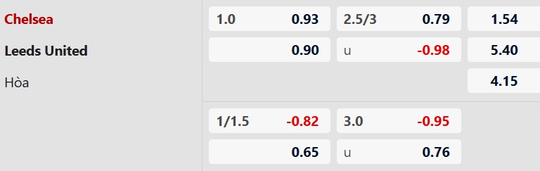 Chelsea chấp 1 hòa ở trận đấu này. Đây là mức chấp khá “hợp lý” nếu nhìn vào giá trị đội hình. Tuy nhiên, nếu nhìn vào hiệu suất thắng kèo gần đây, Chelsea đang khiến giới đầu tư khá lo ngại. Leeds United với tâm thế cửa dưới và lối đá khó chịu hoàn toàn có thể thắng kèo handicap nếu họ cầm hòa hoặc chỉ để thua sát nút.