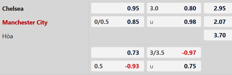 Soi kèo châu Á Chelsea vs Man City: