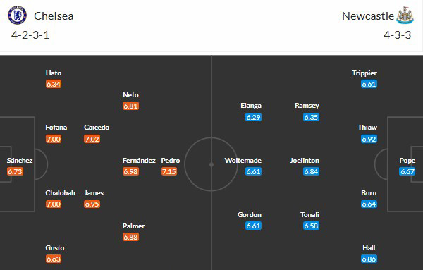 Số liệu thống kê về Chelsea gặp Newcastle: