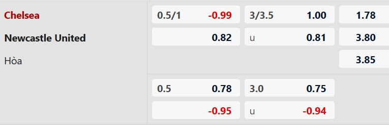 Soi kèo châu Á Chelsea vs Newcastle:
