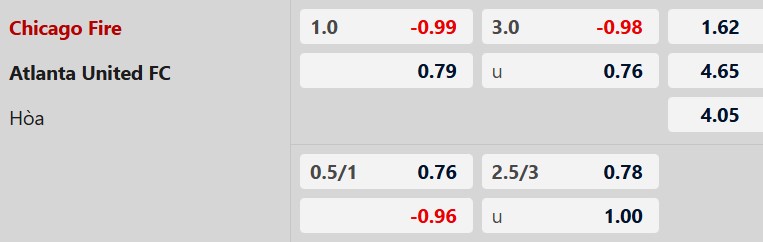 Thông tin tỷ lệ bóng đá Chicago Fire vs Atlanta: