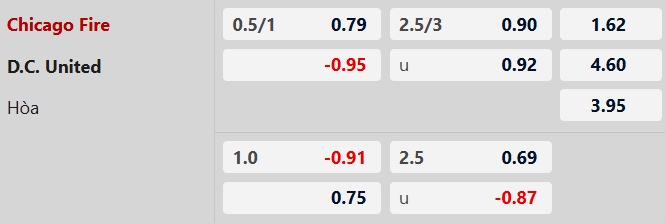 Thông tin tỷ lệ Chicago Fire vs DC United: