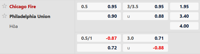 Thông tin tỷ lệ Chicago Fire vs Philadelphia: