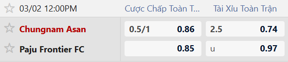 Thông tin tỷ lệ Chungnam Asan vs Paju Frontier: