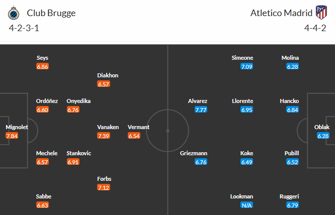 Đang “vào phom”, đội bóng thủ đô Madrid có lý do để tự tin hành quân đến sân của Club Brugge. Nên nhớ rằng, ở đấu trường cúp, đoàn quân của ông Simeone cũng chơi rất tốt trên sân khách. Họ bất bại 5 trận gần đây, trong đó thắng 4, gần nhất là màn vùi dập Betis 5-0 ở tứ kết Cúp Nhà Vua.