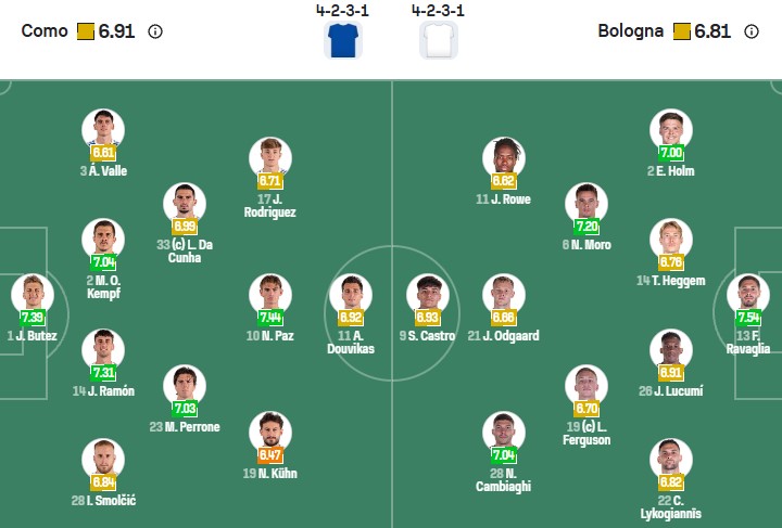 Como thực tế chỉ là đại diện mới lên hạng Serie A vào mùa trước và thành tích đối đầu của họ với Bologna là kém ấn tượng hơn. Trong 3 lần gặp gỡ trước đây, Bologna thể hiện đẳng cấp với 2 chiến thắng và 1 trận hòa. Tuy nhiên với điểm rơi phong độ ở thời điểm này, Como đang nhận được niềm tin và thậm chí đội chủ nhà có thể nối dài chuỗi thắng mà không để thủng lưới lên con số 4.