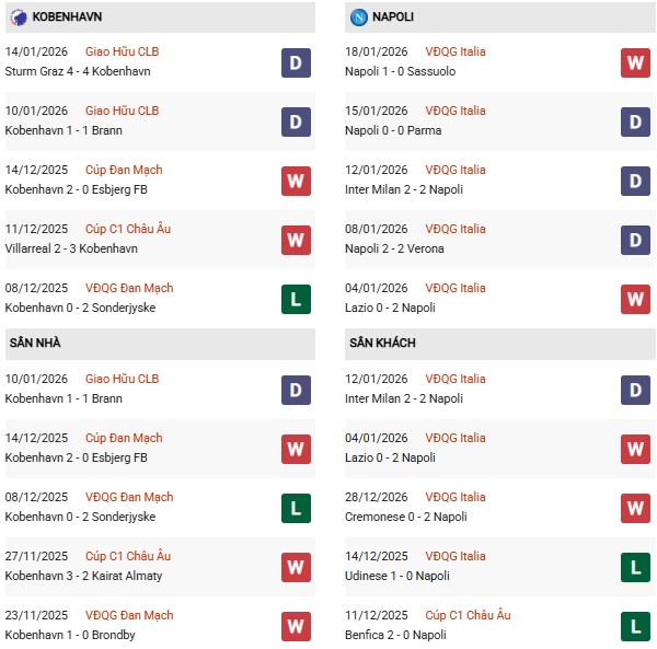 Thống kê phong độ Copenhagen vs Napoli: