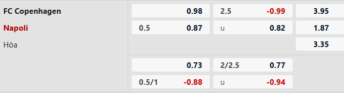 Thông tin tỷ lệ cược Copenhagen vs Napoli: