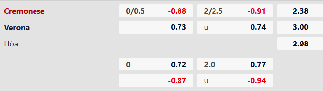 Soi kèo châu Á Cremonese vs Verona: