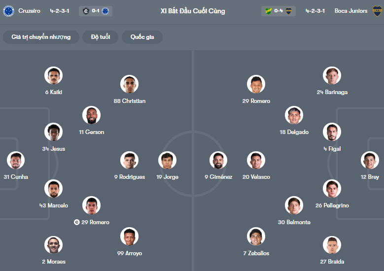 Đội hình dự kiến Cruzeiro vs Boca Juniors: