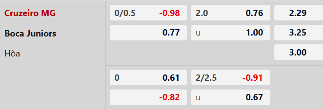 Soi kèo châu Á Cruzeiro vs Boca Juniors: