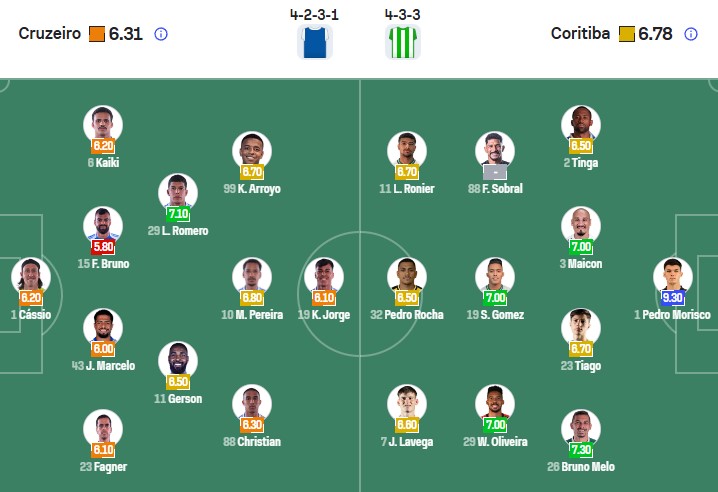 Đội hình dự kiến Cruzeiro vs Coritiba: