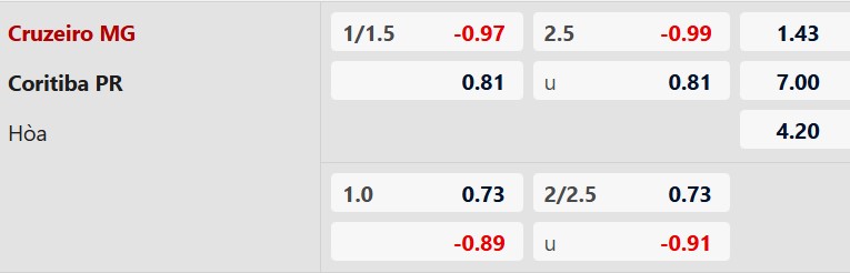 Thông tin tỷ lệ cược Cruzeiro vs Coritiba: