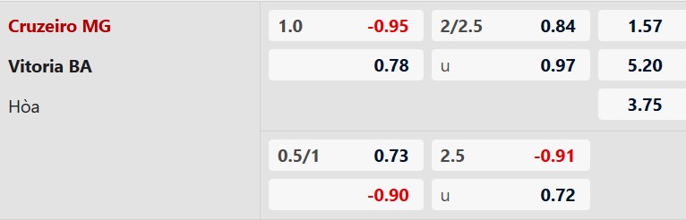 Thông tin tỷ lệ bóng đá Cruzeiro vs Vitoria: