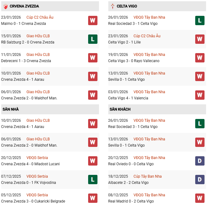 Thống kê phong độ Crvena Zvezda vs Celta Vigo: