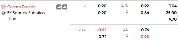 Thông tin tỷ lệ kèo Crvena Zvezda vs Subotica: