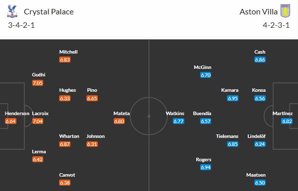 Đội hình dự kiến Crystal Palace vs Aston Villa: