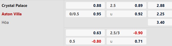 Soi kèo châu Á Crystal Palace vs Aston Villa: