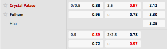 Thông tin tỷ lệ kèo Crystal Palace vs Fulham: